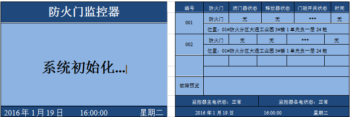 (1)、上電開機后,可先對防火門監(jiān)控器的指示燈、液晶顯示,揚聲器做一遍自檢,確定指示燈、液晶顯示屏和揚聲器工作正常。