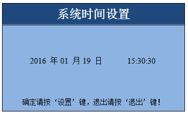 在設(shè)置界面選中“系統(tǒng)時間”,按下“設(shè)置”鍵進入系統(tǒng)時間設(shè)置界面,如下圖:配合