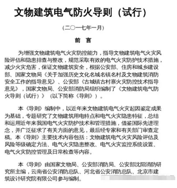 《文物建筑電氣防火導(dǎo)則(試行)》